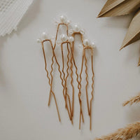 Oft tragen bei einer Hochzeit die Brautjungfern das gleiche Kleid oder ihre Kleidung ist farblich aufeinander abgestimmt. Dadurch wird vermieden, dass es zu Unstimmigkeiten kommt und es entsteht ein elegantes und farblich schönes Bild. Warum sollte also nicht auch der Schmuck aufeinander abgestimmt sein? Unser Braut-Haarschmuck verleiht auch den Frisuren der Brautjungfern den letzten Schliff. Natürlich steht die Braut an ihrem besonderen Tag im Mittelpunkt. Deshalb solltest du für die Brautjungfern eher dezente Accessoires für die Haare wählen. Eine schöne Idee ist es, die Schmuckstücke passend zum Headpiece der Braut auszusuchen. Trägt die Braut einen Haarreif oder eine Krone mit Perlen, könnten ihre Freundinnen zum Beispiel etwas unauffälligere, aber dennoch wunderschöne, Haarnadeln mit Perlen tragen. So ergibt sich ein stimmiges, elegantes Bild und der Fokus ist trotzdem ganz klar auf der Braut.