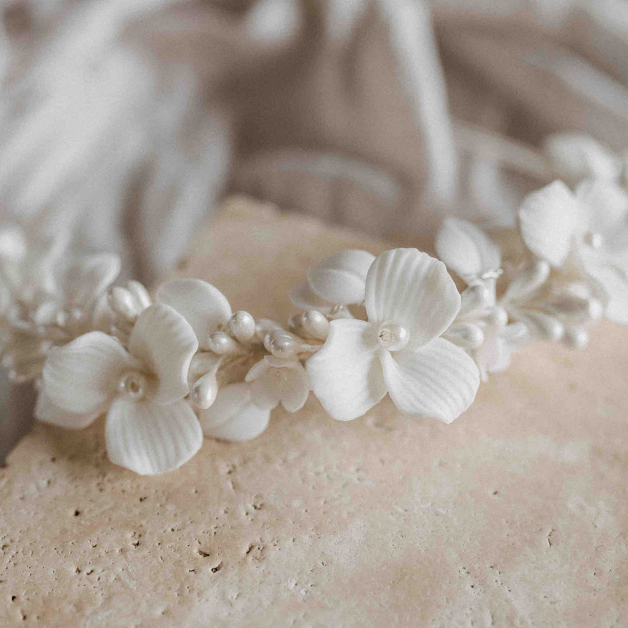 Krone Braut mit Keramik Blüten - Romantische Eleganz für deine Hochzeit